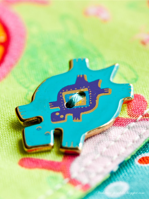 Процесс покажу на примере своей новой «черепаховой» сумочки на длинном ремешке - спортивно-отпускной и вызывающе-беззаботный вышел экземпляр :). Сумочка носится через плечо, закрывается большим клапаном с магнитной кнопкой. Именно этот клапан и придает сумке спортивную нотку, ну и карабин, конечно, усиливает эффект. Яркие ткани - японский хлопок с черепашками и американские горошки от «Riley Blake» не требуют добавления каких-либо украшений, ну разве только дизайнерскую пуговку-черепашку от Laurel Burch :).